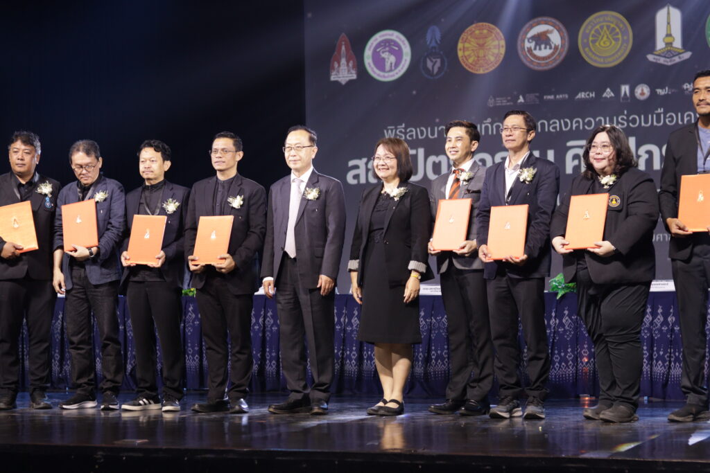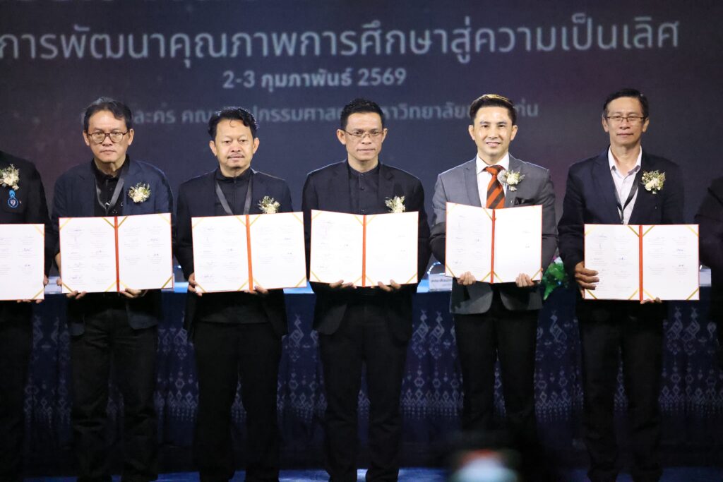 วันที่ 2 กุมภาพันธ์ 2569 คณะศิลปกรรมศาสตร์ และคณะสถาปัตยกรรมศาสตร์ มหาวิทยาลัยขอนแก่น ร่วมเป็นเจ้าภาพจัดการประชุมสัมมนาเครือข่ายสถาบันอุดมศึกษาทางด้านสถาปัตยกรรม ศิลปกรรมและการออกแบบ เพื่อการพัฒนาคุณภาพการศึกษาสู่ความเป็นเลิศ ณ โรงละครคณะศิลปกรรมศาสตร์ มหาวิทยาลัยขอนแก่น โดยมีผู้บริหาร คณาจารย์ และบุคลากรจากเครือข่าย 12 สถาบันการศึกษา 16 คณะวิชา เข้าร่วมกว่า 200 คน บรรยากาศเป็นไปอย่างสง่างามและเปี่ยมด้วยพลังแห่งความร่วมมือทางวิชาการ