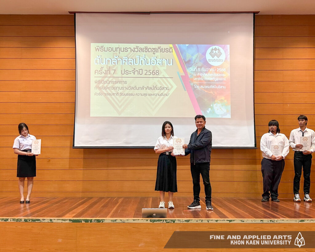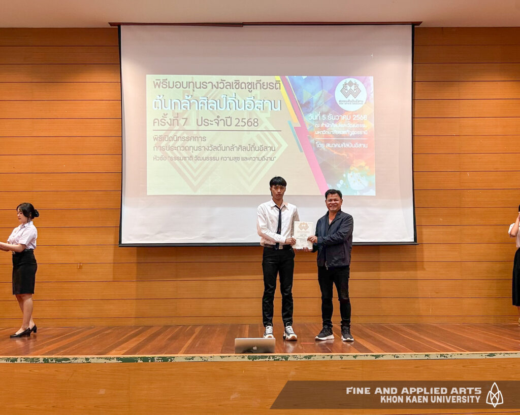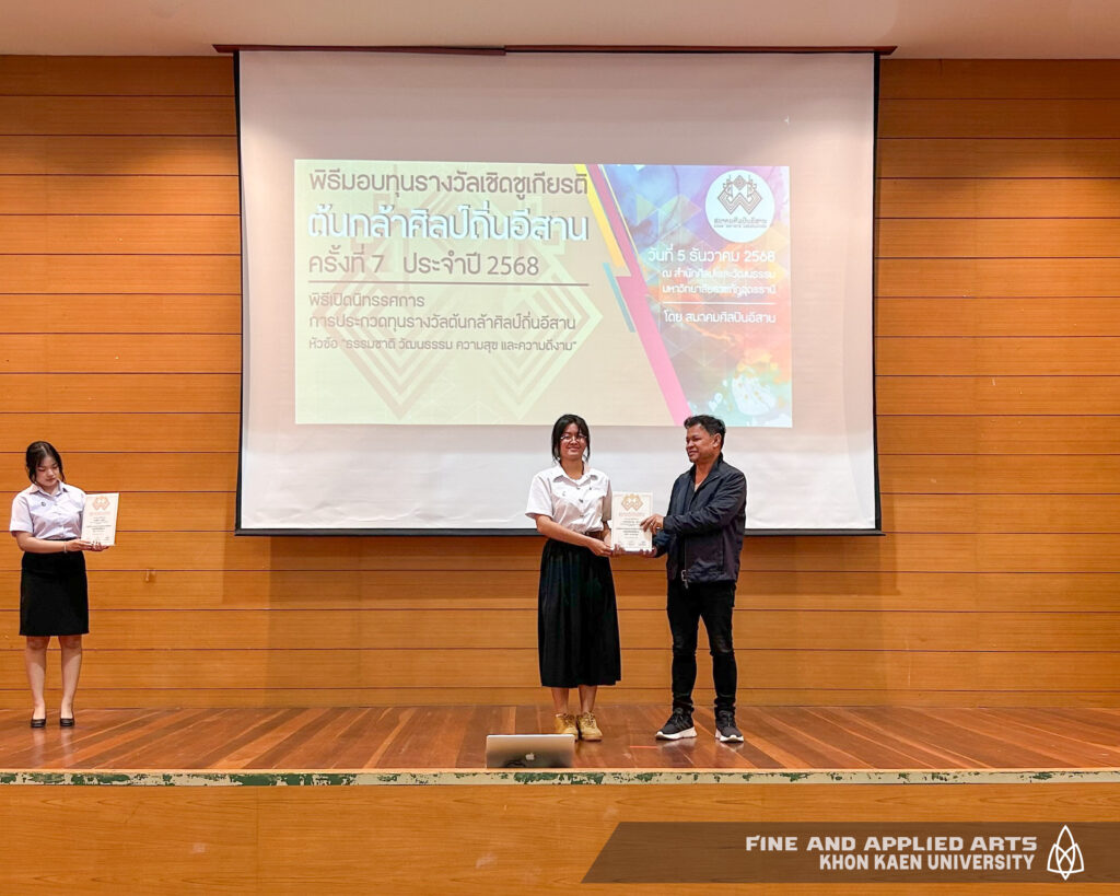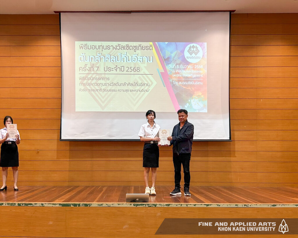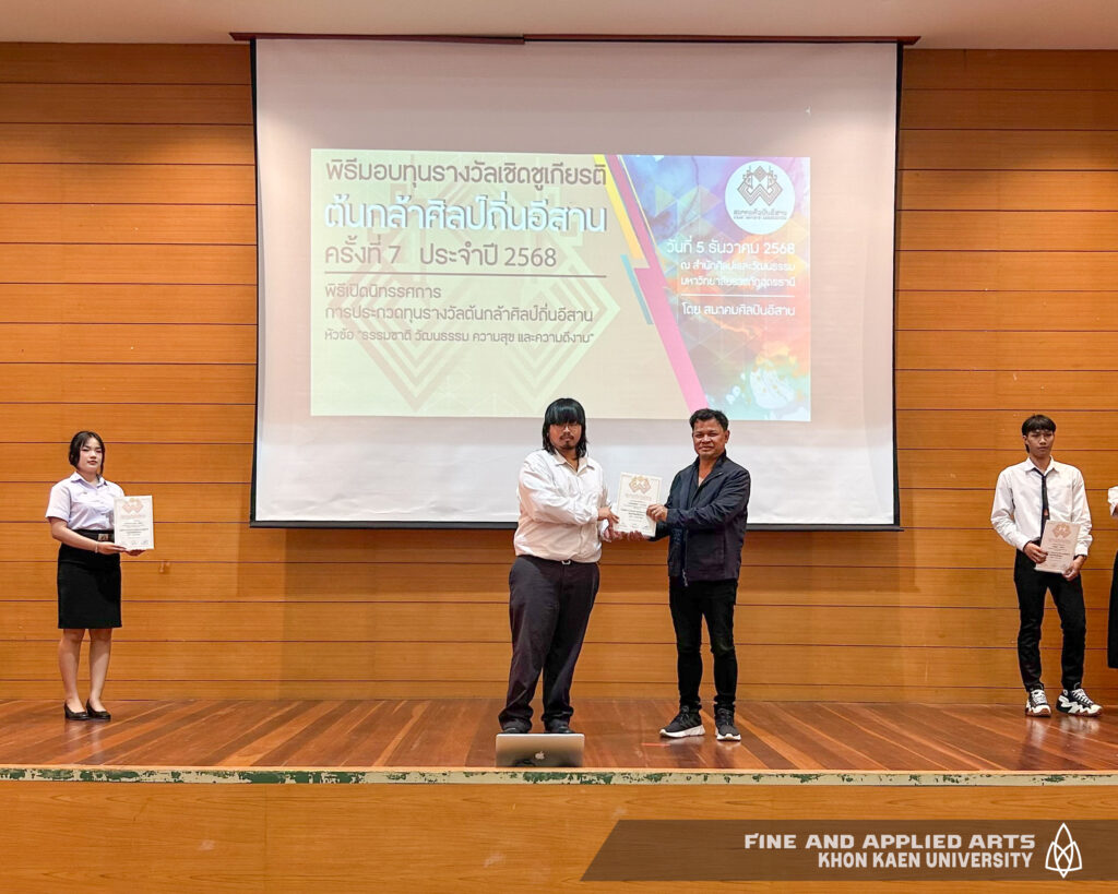 นักศึกษาคณะศิลปกรรมศาสตร์ มหาวิทยาลัยขอนแก่น ได้รับรางวัล “เชิดชูเกียรติต้นกล้าศิลป์ถิ่นอีสาน ครั้งที่ 7 ประจำปี 2568” รอบที่ 1